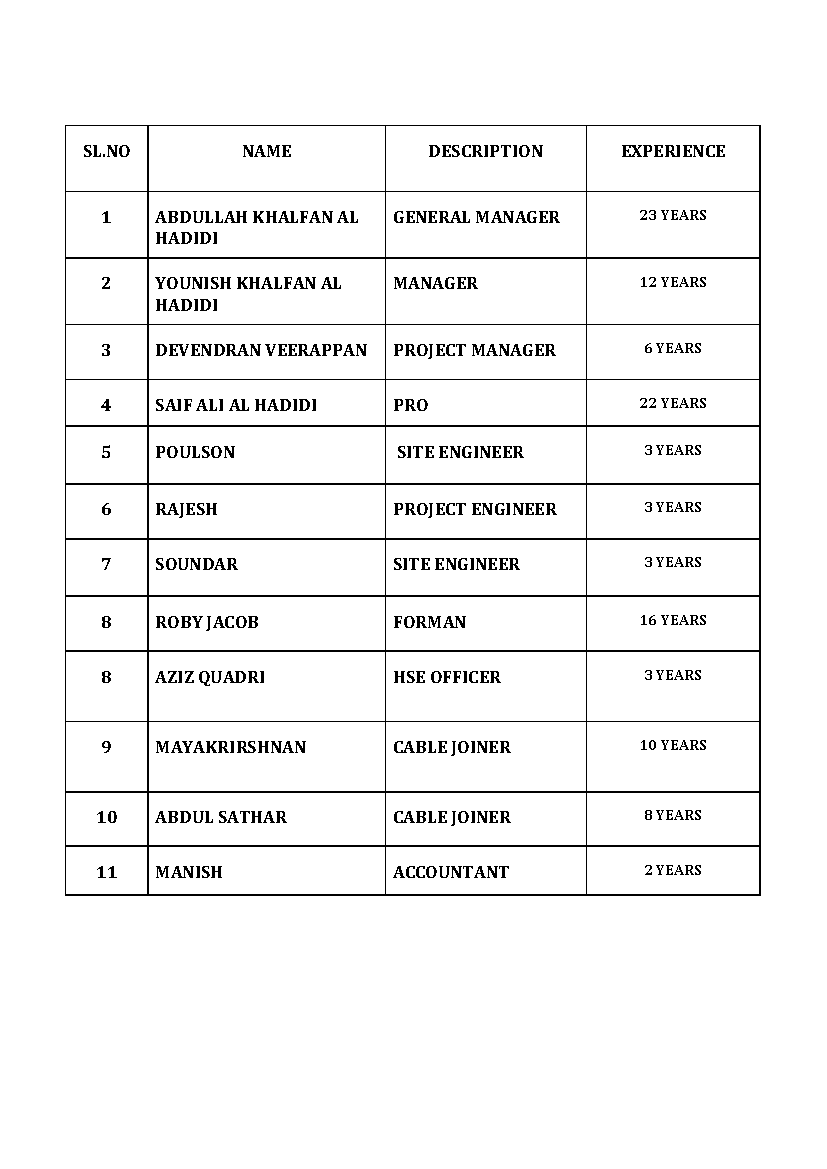 WORK EXPERIENCE 23 Years working on Mazoon Electricity Company S.A.O.C (1989-2012) recently he was working as Nizwa District Engineer